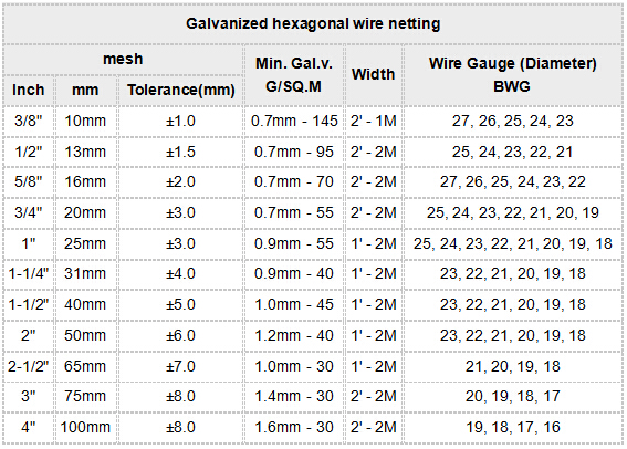 2.) Minimum Galvanization is only for typical wire diameter as stipulated separately in the column for your reference; Also it is only for hot dipped Galvanized Netting.