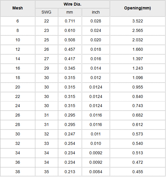 copper wire cloth 10mesh/inch - 60mesh/inch;